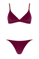 - Bikini realizzato in morbido velluto con leggere catene dorate sul top e lateralmente sullo slip