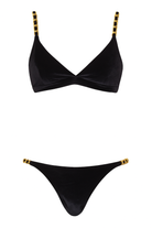 - Bikini realizzato in morbido velluto con leggere catene dorate sul top e lateralmente sullo slip