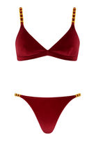 - Bikini realizzato in morbido velluto con leggere catene dorate sul top e lateralmente sullo slip