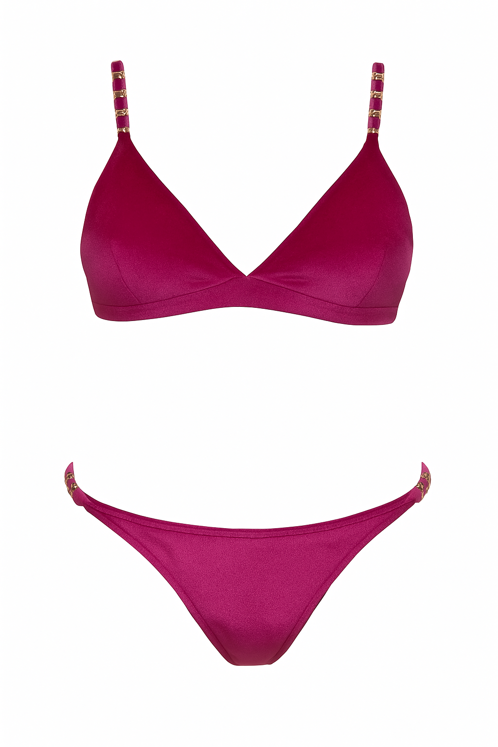 - Bikini made of soft velvet with light golden chains on the top and on the side of the bottom