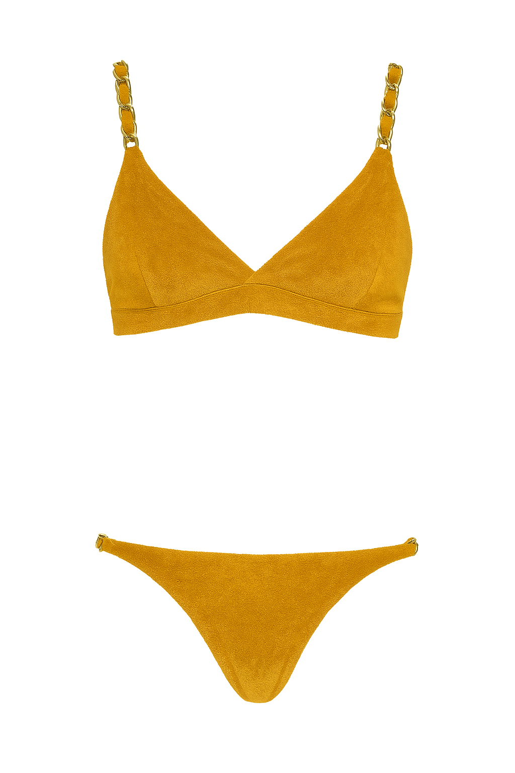 - Bikini made of soft velvet with light golden chains on the top and on the side of the bottom